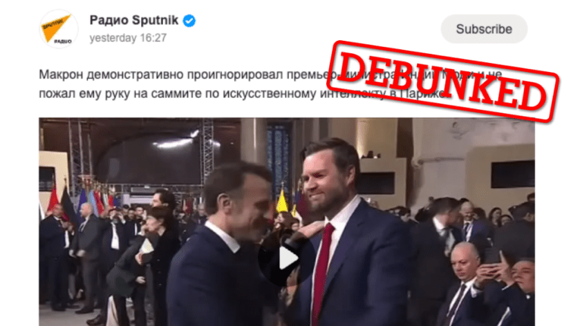 The claim first surfaced on 11 February on Sputnik, Russia’s state news agency, which is widely regarded as a mouthpiece for Russian government propaganda. The outlet Russian-langage service reported: “Macron defiantly ignored Indian PM Modi and did not shake his hand at the AI summit in Paris.”