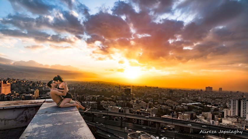 Left: An Iranian dancer practises pole-dancing in a private underground venue. Right: Another Iranian woman performs aerial dance in a women-only gym. In a country where women are banned from riding motorbikes, singing or dancing in public and appearing in public without a hijab, both aerial and pole dance are acts of defiance and, for many, forms of resistance.